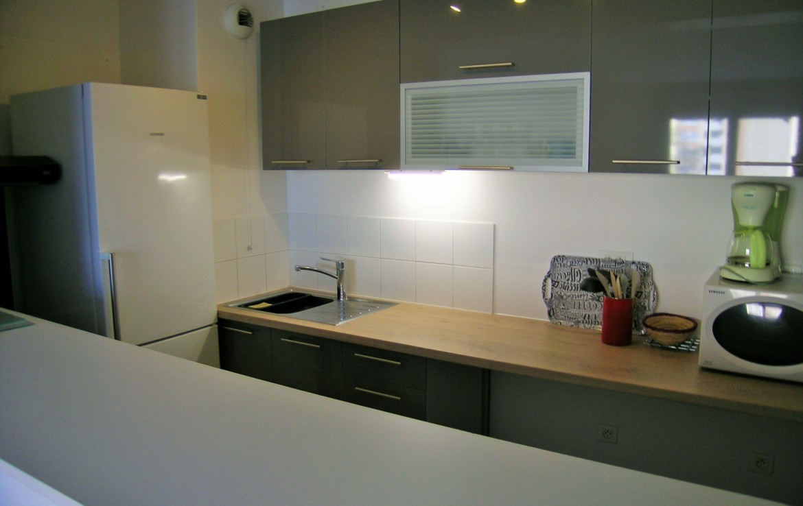 Vous disposez d’une entrée avec penderie, un séjour avec parquet avec vue dégagée, d’une cuisine ouverte équipée (éléments bas & hauts de cuisine – réfrigérateur – gazinière avec four et plaque de cuisson – hotte – micro/ondes – lave-linge et emplacement d’évacuation pour autre machine), 2 chambres avec penderie et parquet au sol, WC séparé, salle de bains.