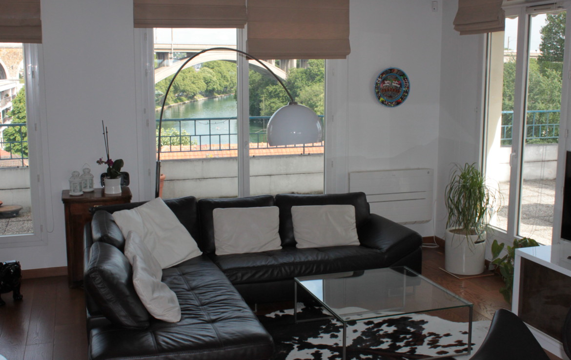 Dernier étage avec entrée privative, vous disposez d’un salon & salle à manger ( 35 m²) avec poêle à bois donnant sur une terrasse et balcons filants (77 m²) face à la Marne, d’une cuisine équipée, de 4 véritables chambres dont une suite parentale avec salle d’eau, d’une salle de bains, de deux W.C et de nombreux rangements.