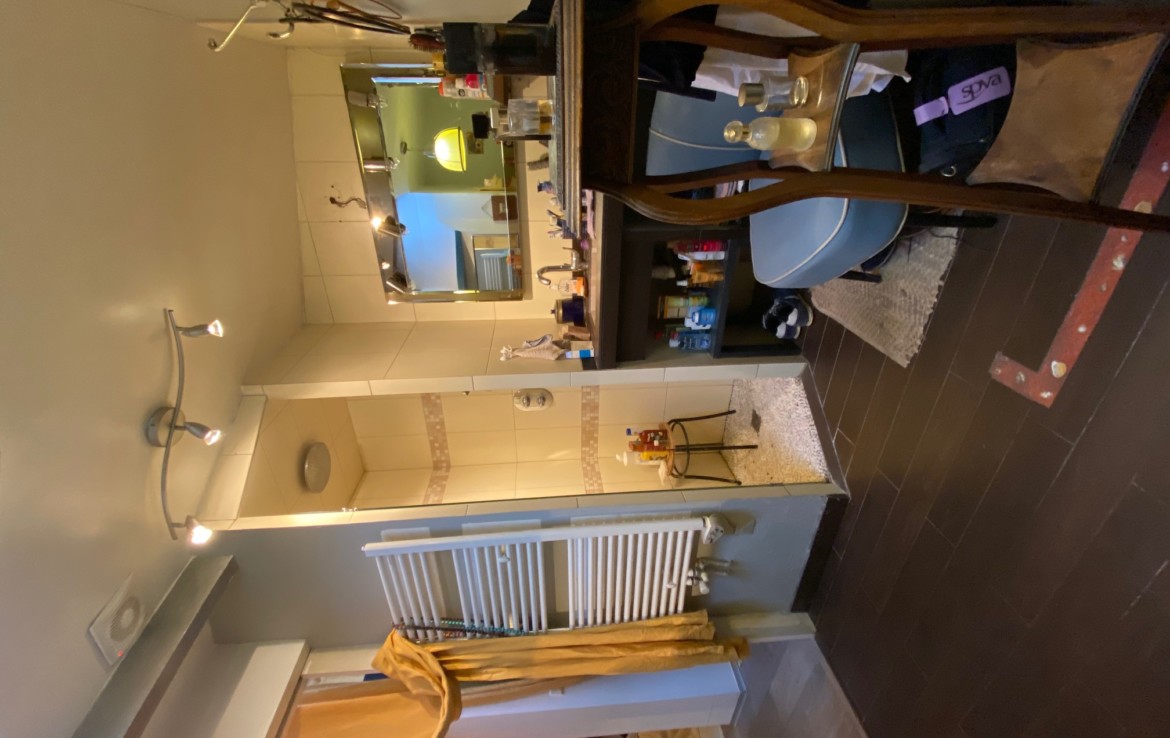 au 1er étage : deux chambres avec rangements et une salle de bains avec W.C.