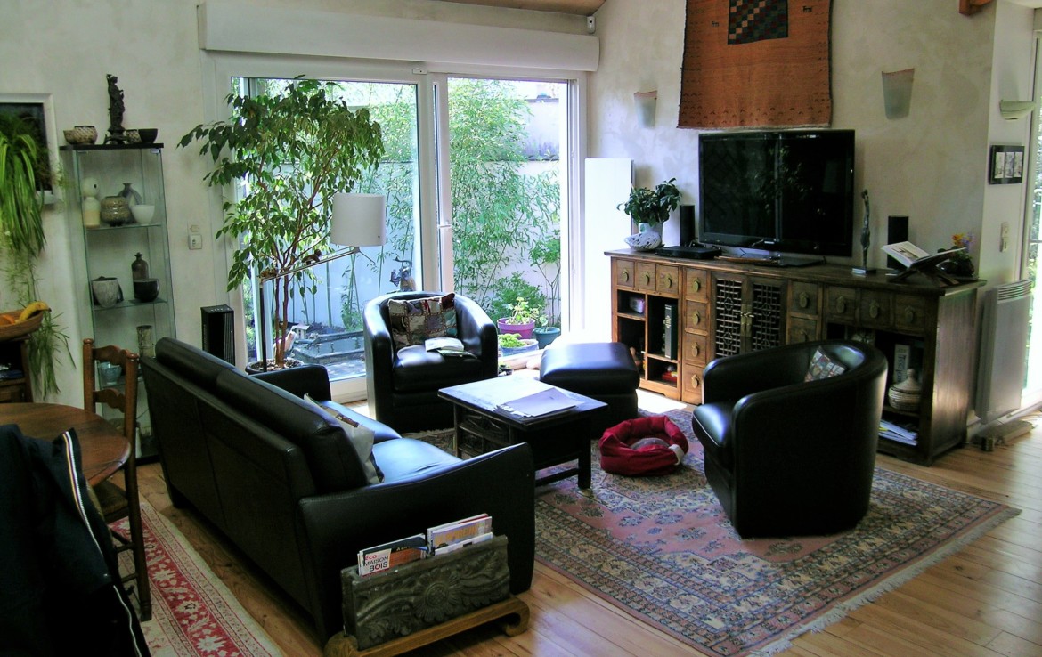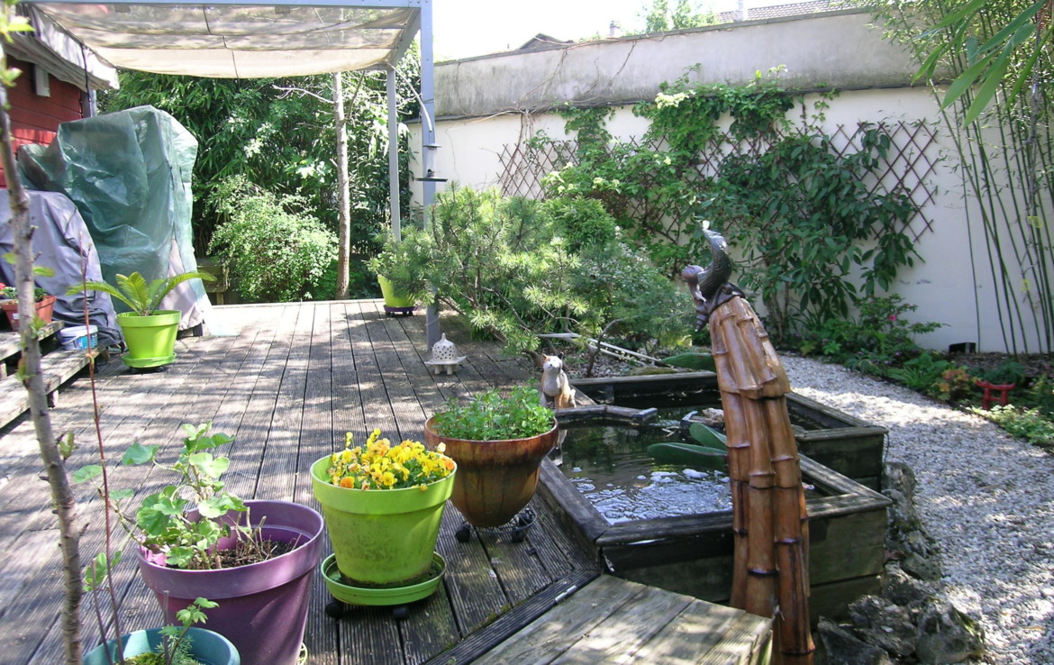 Vous disposez d’une allée privative pour accéder à la maison avec 2 emplacements de stationnement. La maison surélevée dispose d’un étage : au RDC : hall d’entrée, une chambre avec S.D.B et dressing, W.C, une cuisine ouverte avec office, un séjour cathédrale avec insert bois ( HSP de 4,60m²) avec un bureau attenant, le tout donnant sur une terrasse avec vue sur jardin japonisant à l’étage : mezzanine et 2 chambres avec salle d’eau et W.C.