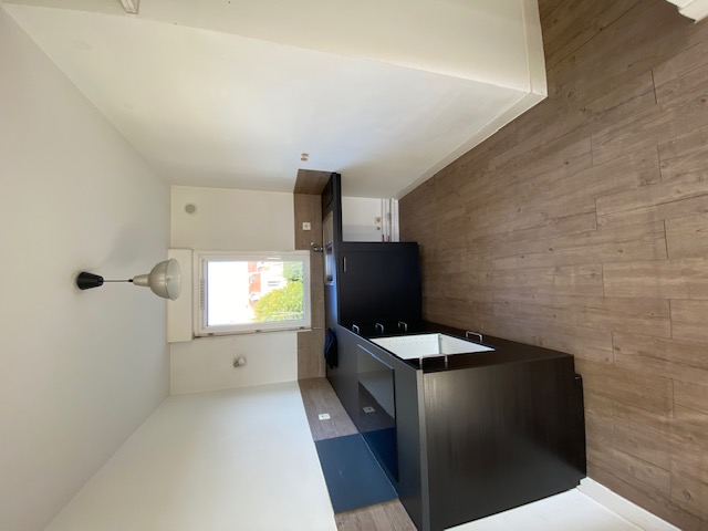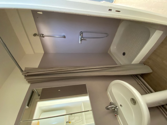 Vous disposez d’une petite entrée avec rangement, d’une pièce principale (16 m²) avec 2 fenêtres sur jardin, d’une cuisine ouverte aménagée, d’une salle d’eau avec W.C