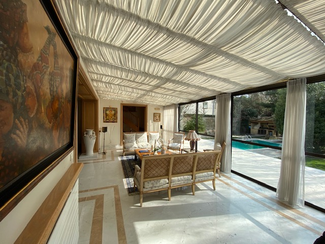 Avec également un pavillon indépendant formant un 2 pièces, pour compléter le tout, vous disposez d’un double garage avec salle de sport.