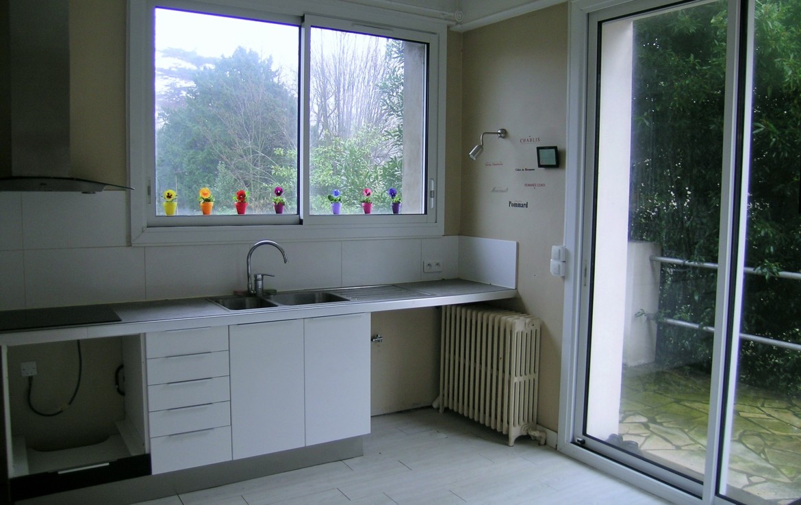 Au niveau de l’entre sol vous disposez de 3 chambres, d’une buanderie avec salle d’eau, d’un local chaudière et pour compléter le tout d’un grand garage (45 m²) et un grand jardin.